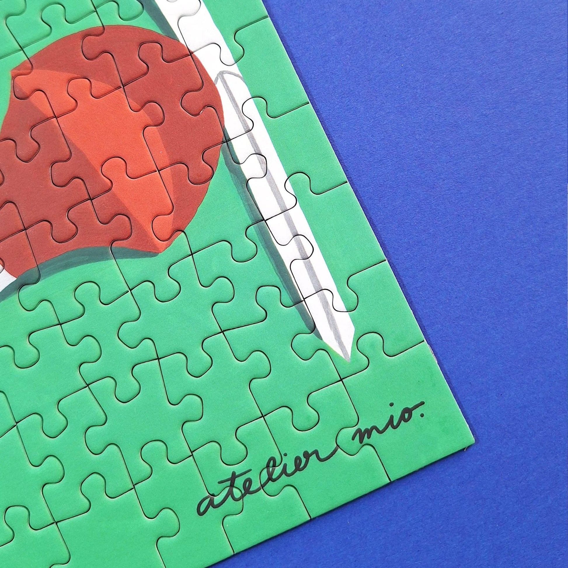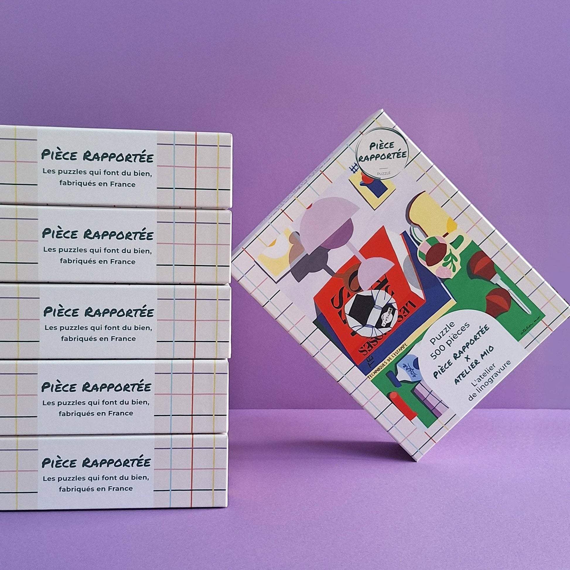 Emilie opens the door of her creative studio to us, where the smell of coffee blends with that of fresh ink. It’s time for a snack break between two carefully engraved prints. A 500-piece puzzle that pays tribute to creativity, time for oneself, and the art of slowing down. Ideal for curious and creative souls.